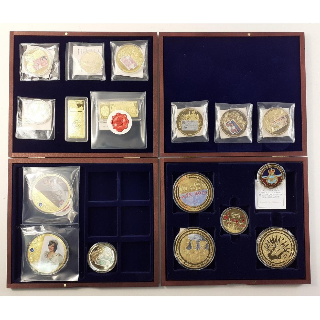 A good selection of modern plated coins from a number of sets. Some military, some banknote commemoratives, Diana, Titanic etc, 17 coins in all.