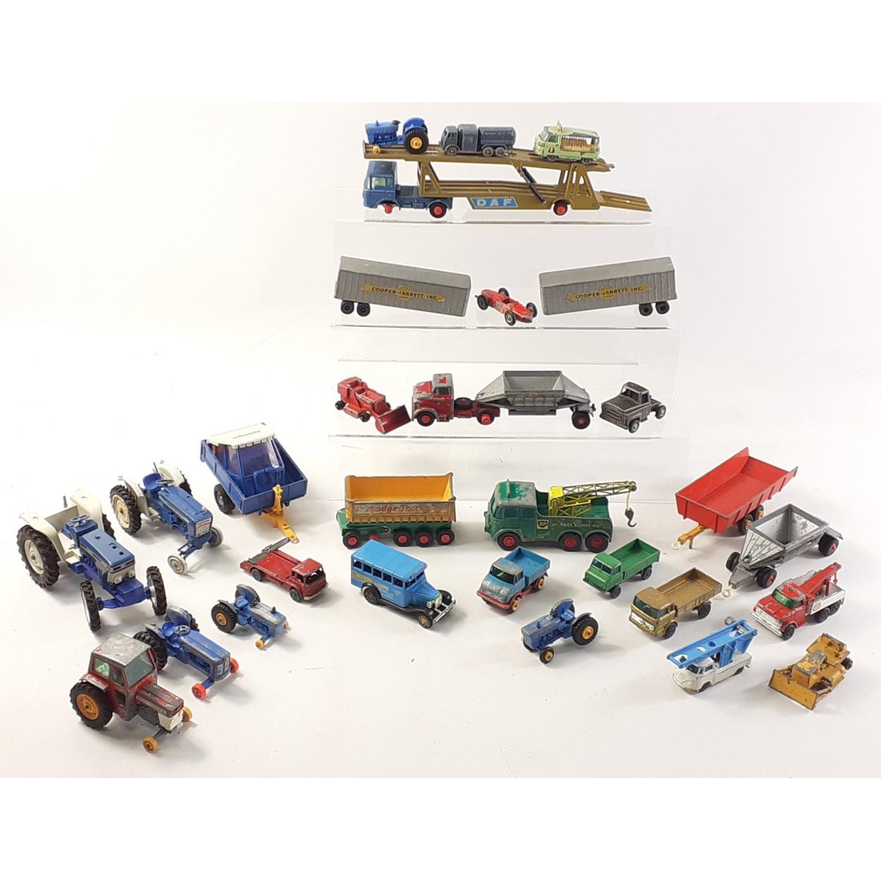 A collection of playworn diecast models, to include tractors, commercial vehicles etc.