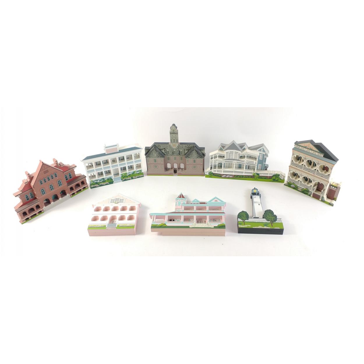 A collection of SHEIL'S houses to include Key West lighthouse, Asendorf House Savannah Georgia, John Lowe Junior home Key West, Warren House Key House, Southernmost House Key West, Custom House Key West, Capitol Williamsburg Virginia and lastly Illingworth Gingerbread Key West - dimensions of the largest item 20cm x 15cm approx