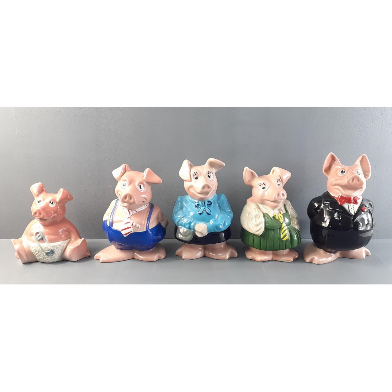 A complete set of five Natwest glazed ornamental ceramic piggy banks by WADE - no chips or signs of damage repair - tallest figure 15cm approx
