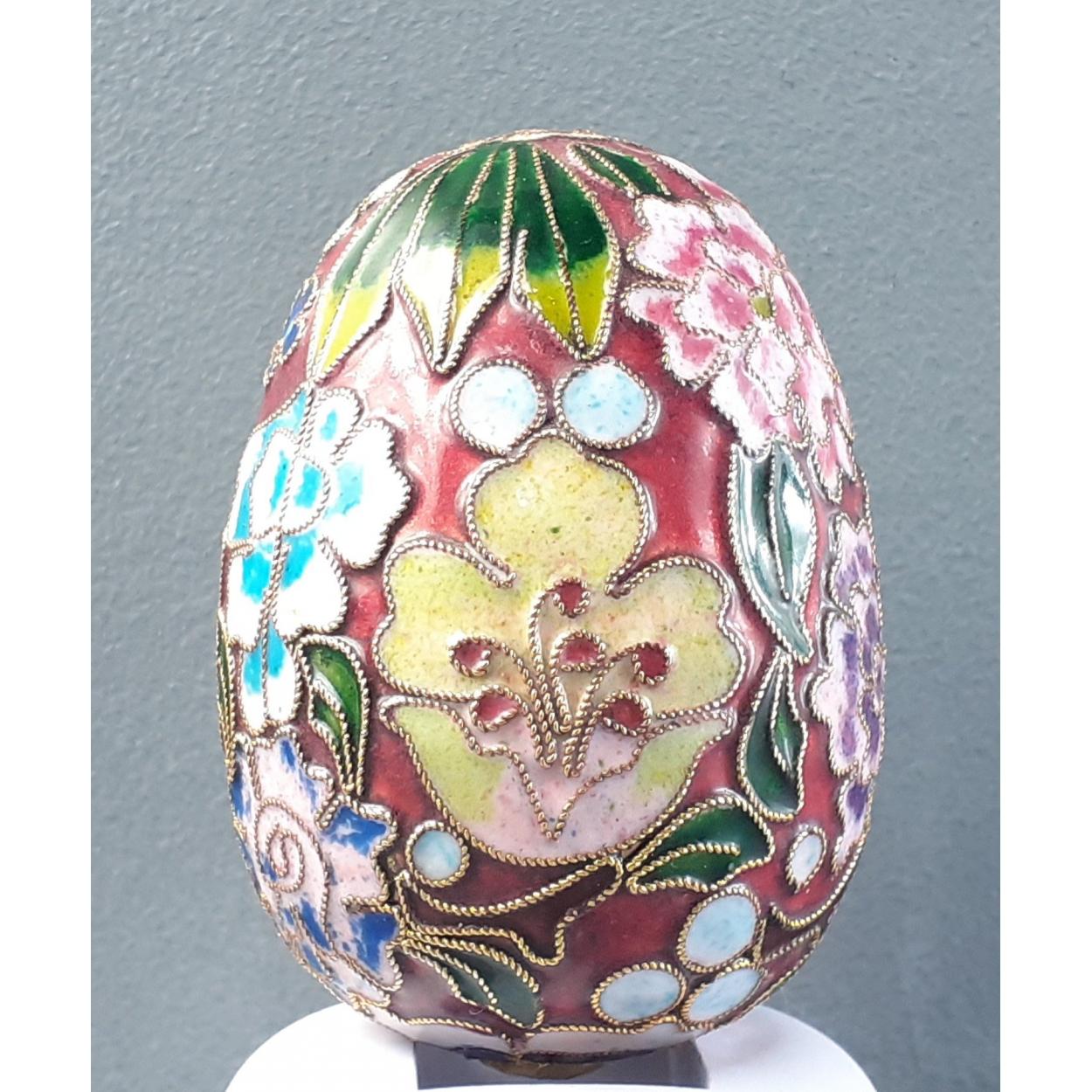 BEAUTIFUL CLOISONNE enamel egg in floral design - dimensions 8cm tall x 6cm diameter at the widest point approx