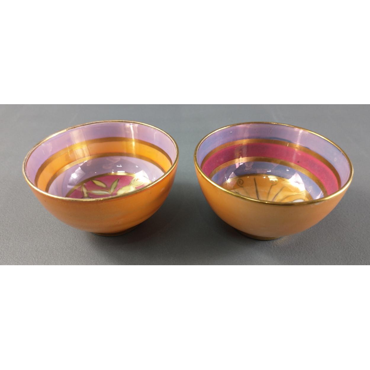 A pair of PARAGON Rainbow lustre saki dishes (rd no 716642). Diameter 8cm. Small colour defect on one.