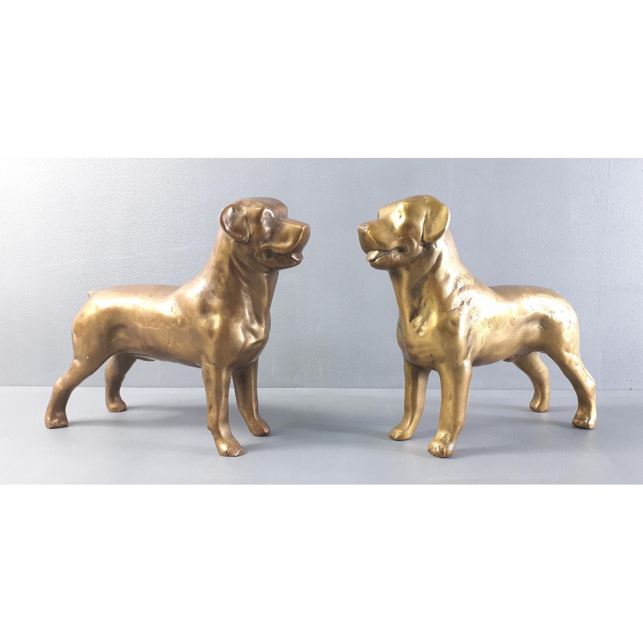 SUBSTANTIAL - A pair of VINTAGE SOLID BRASS Rottweiler dog figurines - combined weight over 5.620kg approx dimensions length 16cm x height 15cm