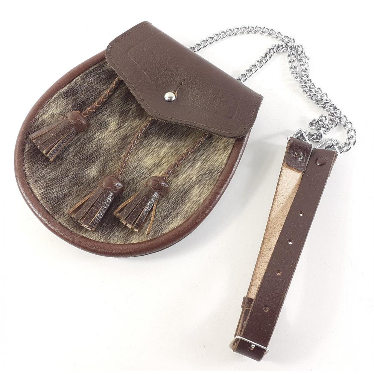 A VINTAGE leather gent's SPORRAN made Morrison of Haymarket Edinburgh - 19cm height x 18cm width approx - this item is in exceptional condition