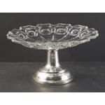 A crystal comport with white metal base and continental Maltese Cross hallmarks. Stands 12cm tall, 21cm across. A very attractive item in good order