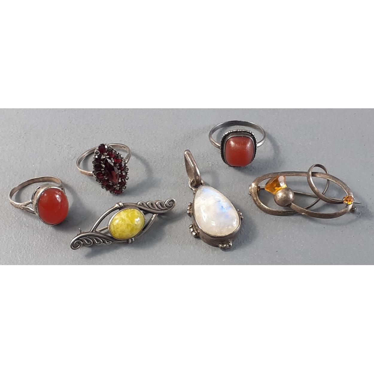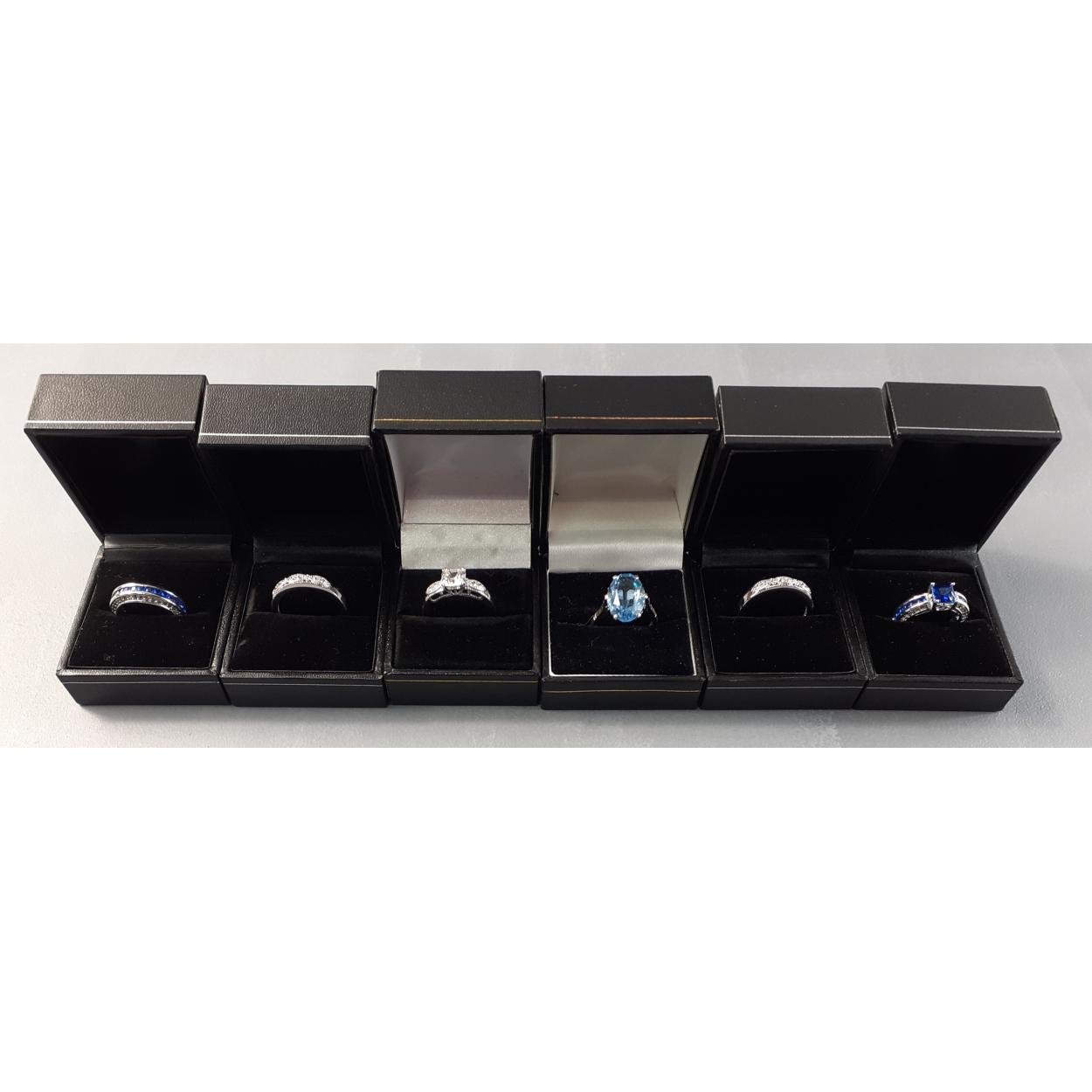 Six rings mainly stamped 925, none reacting to a magnet, sizes M-S