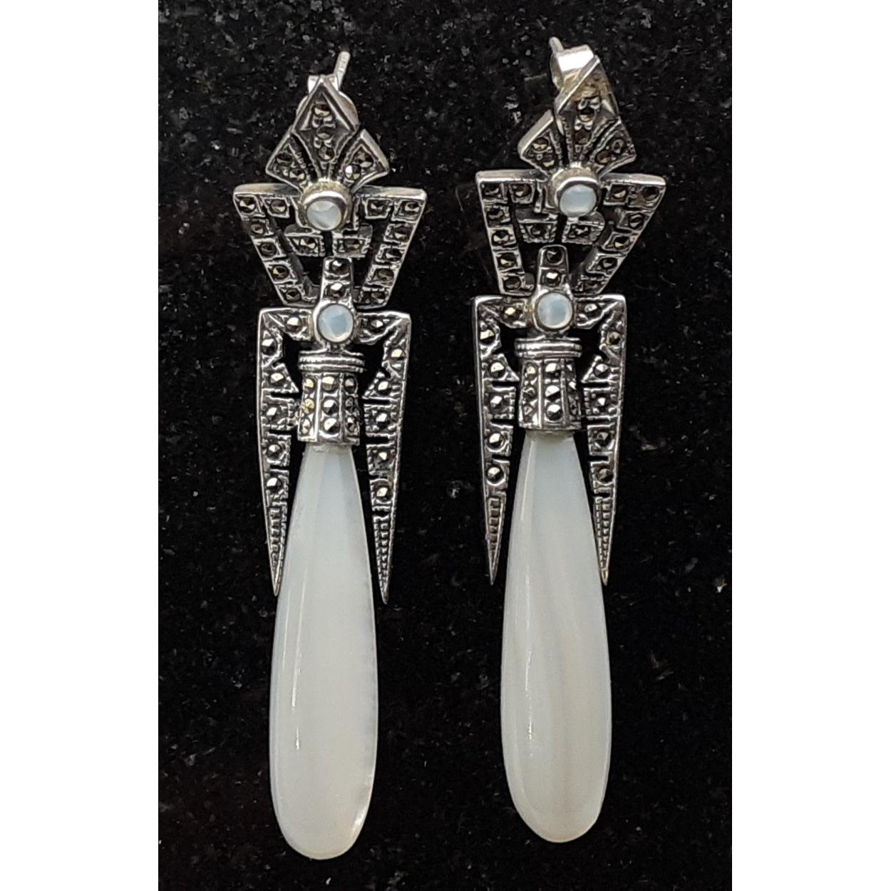 SPARKLING! A pair of 925 stamped earrings with sparkly marcasite MOTHER OF PEARL drop earrings - weight 11.78g gross approx