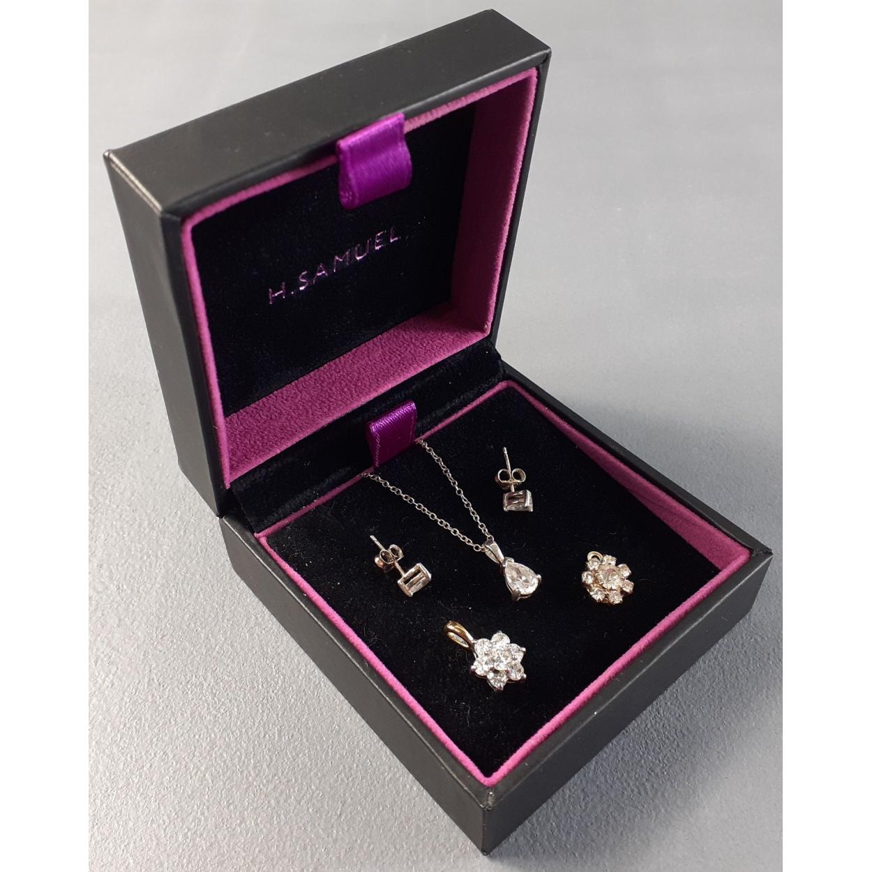 A wee jeweller's box with a 925 stamped white stone pendant and matching earrings with two costume pieces (pendants) with white stones