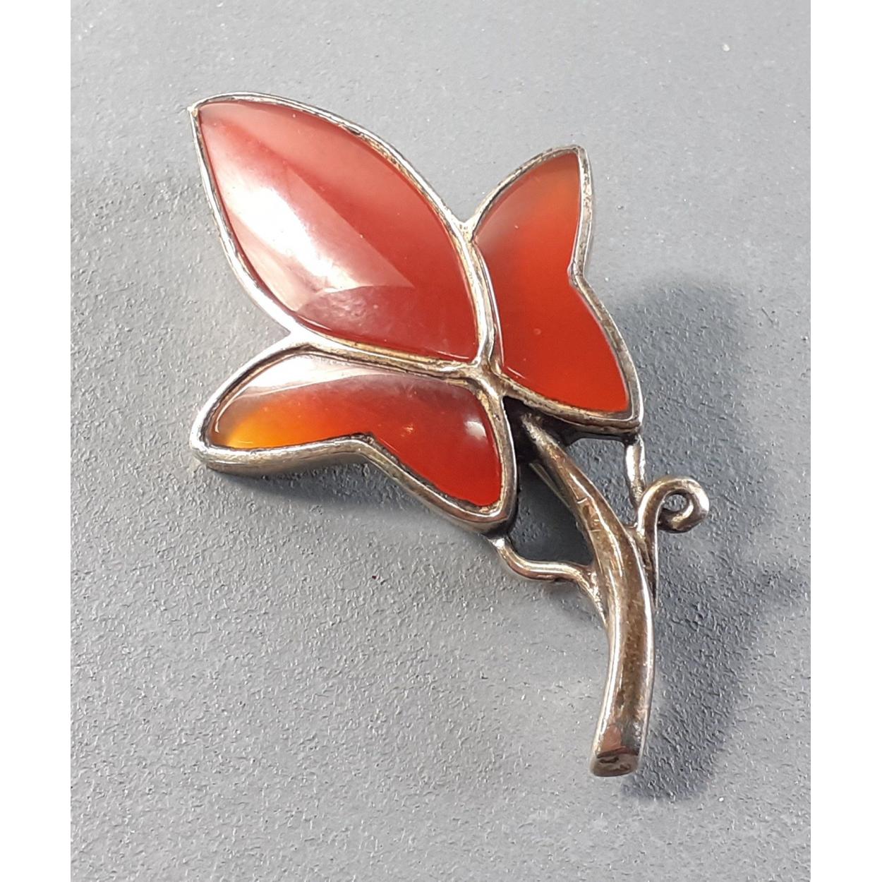INTERESTING vintage sterling silver BALTIC AMBER floral pin brooch - gross weight 14.60g approx and dimensions height 6cm x width 4cm approx