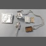 A wee jeweller's box with a 925 stamped white stone pendant and matching earrings with two costume pieces (pendants) with white stones