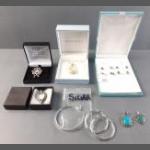 A 925 or sterling marked silver jewellery lot to include pearls with silver clasp, bangles, pendants etc. Gross weight without the pearls 90g approx.