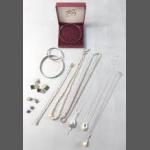 UMM A small collection of silver jewellery to include a hallmarked bangle, 40cm and a 1977 hallmarked ingot. Gross weight 47.2g approx