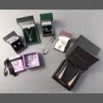 A collection of silver jewellery to include a cross set with small red stone, an open heart set with clear stones, a pair of hoop bird shaped earrings, a pair of sparkly stud earrings, and an impressive pair of hoop cone shaped earrings approx 60mm long etc. All boxed in excellent condition.