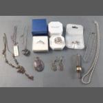 A collection of unmarked white metal jewellery and a PRETTY sterling silver stamped purple tear drop necklace 4.43g gross etc