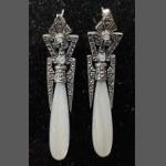 SPARKLING! A pair of 925 stamped earrings with sparkly marcasite MOTHER OF PEARL drop earrings - weight 11.78g gross approx