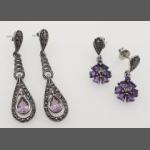 Two pairs of 925 stamped earrings with purple stones - gross weight 9.84g approx