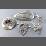 A silver collection of jewellery to include a Celtic knot brooch with Edinburgh hallmarks, Thai silver bracelet and a silver bracelet with lock. Total gross weight 67.5g approx.