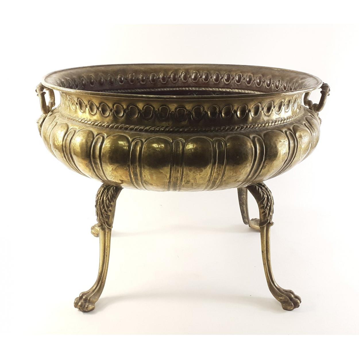 Summer evening entertainment - impress your guests with this vintage twin-handled brass wine cooler with lion claw feet measuring 52 x 44 x 39cm approx