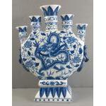A vintage blue/white Asian tulip bowl with dragon motif standing 25cm tall with Chinese marks to base. No damage