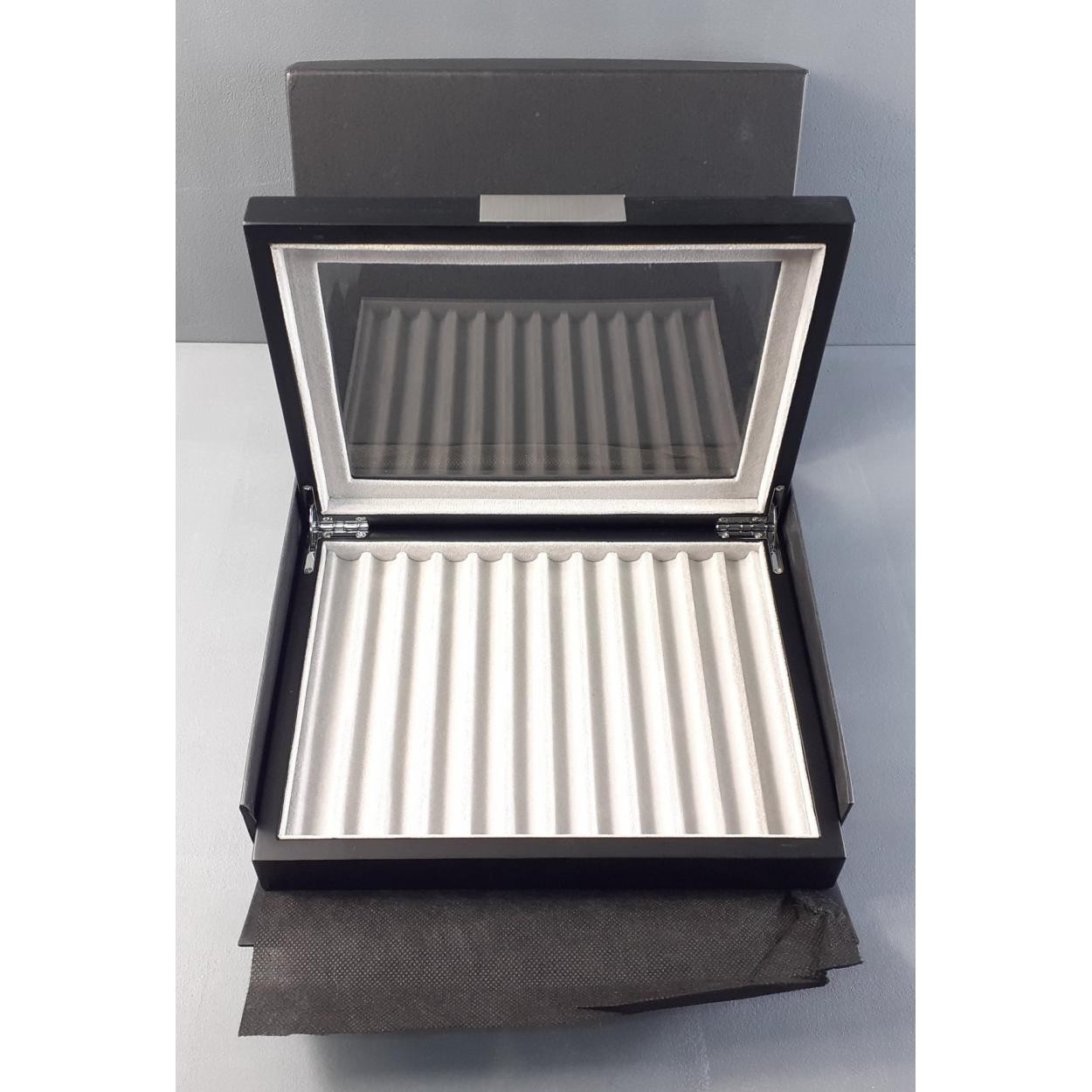 A high quality PEN COLLECTORS storage and display case. Metal banded wooden construction with space for twelve pens. A very classy piece.