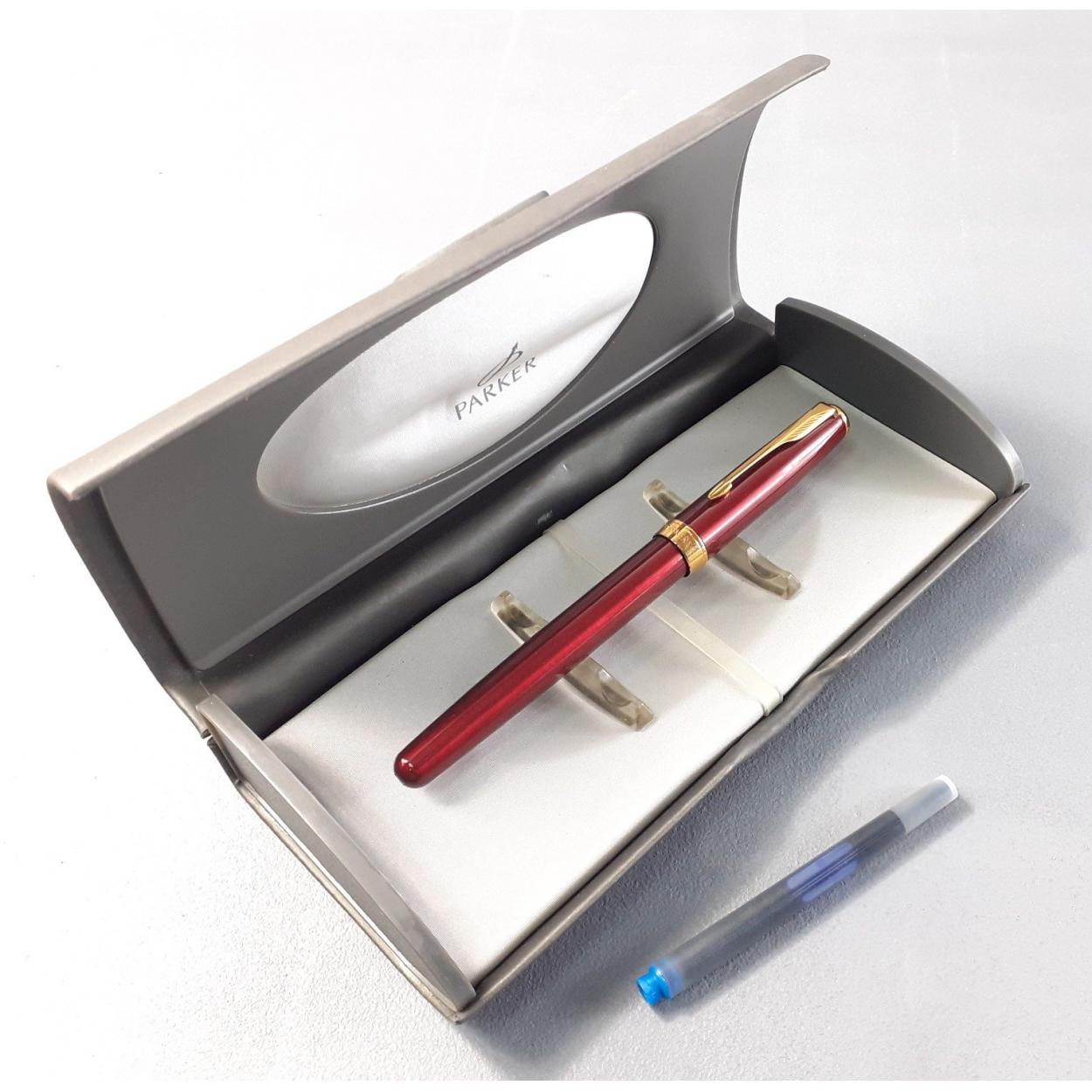 PARKER SONETT RUBY RED 18k gold detailing fountain pen complete with original presentation box and one top-up ink cartridge - pen casing and nib in good condition