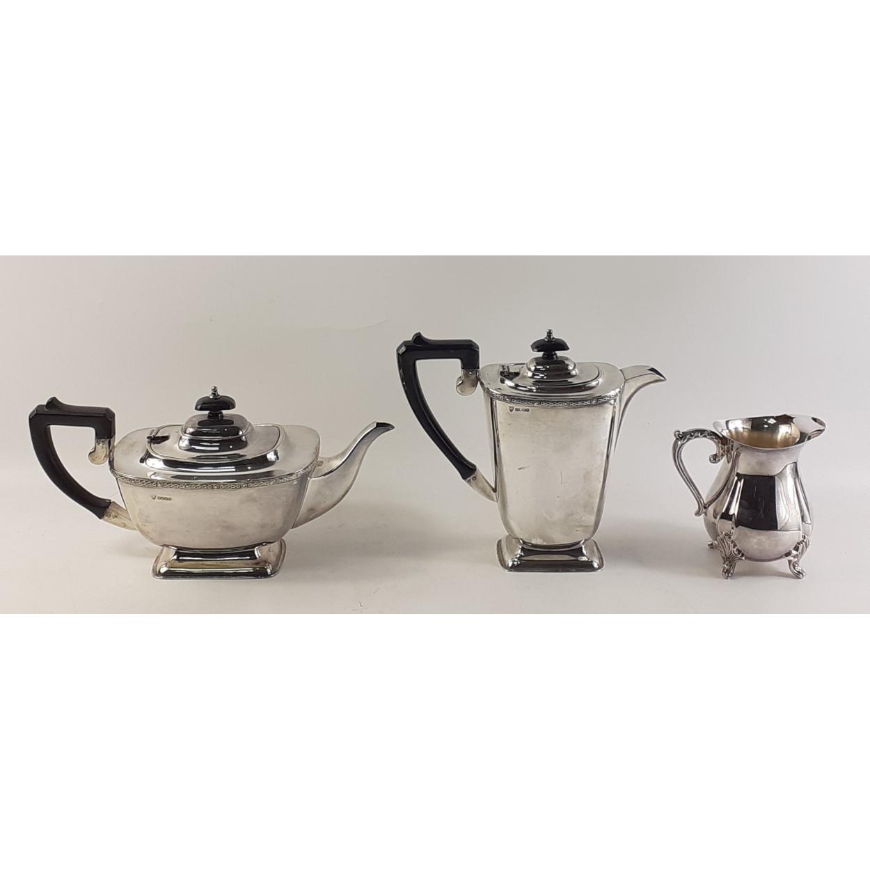 A quality EPNS tea service comprising teapot, coffee pot and cream jug. Coffee pot stands 20cm tall approx.