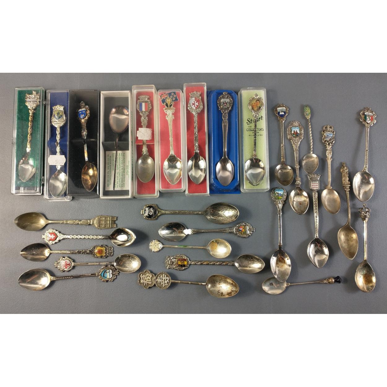 A large collection of collectors teaspoons from places around the world and the UK