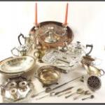 A box of silver plated items, gallery tray, teapot, coffee boat, gravy boat, pretty fruit bowl, candelabra and much else.