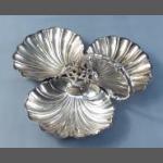 A delightful VINTAGE triple shell silver plated hors d'oeuvres dish with coral effect handle