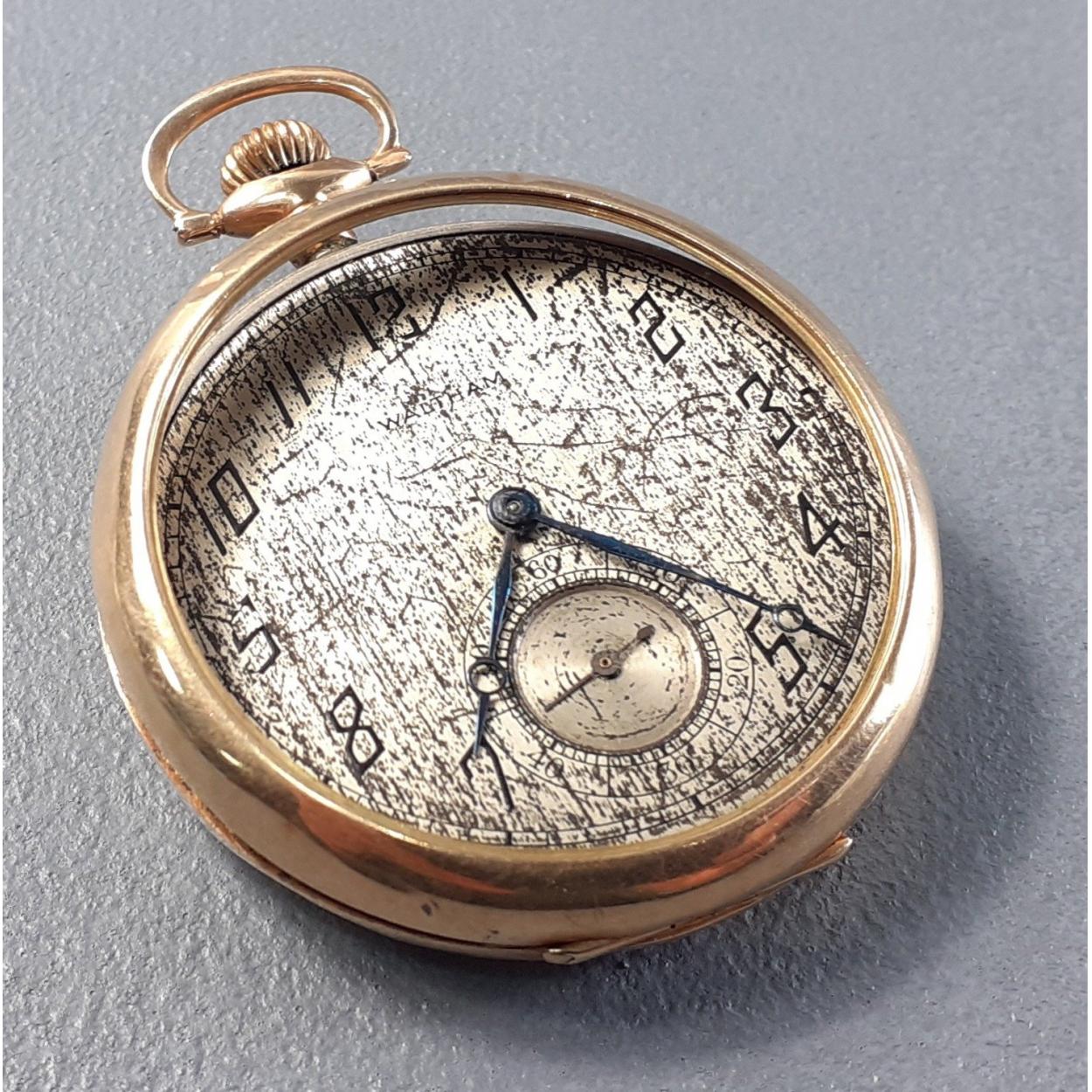 An American A.W.W. Waltham pocket watch in poor condition with 14K marked thin case. No mark to winder. Gross weight including movement 50g approx.