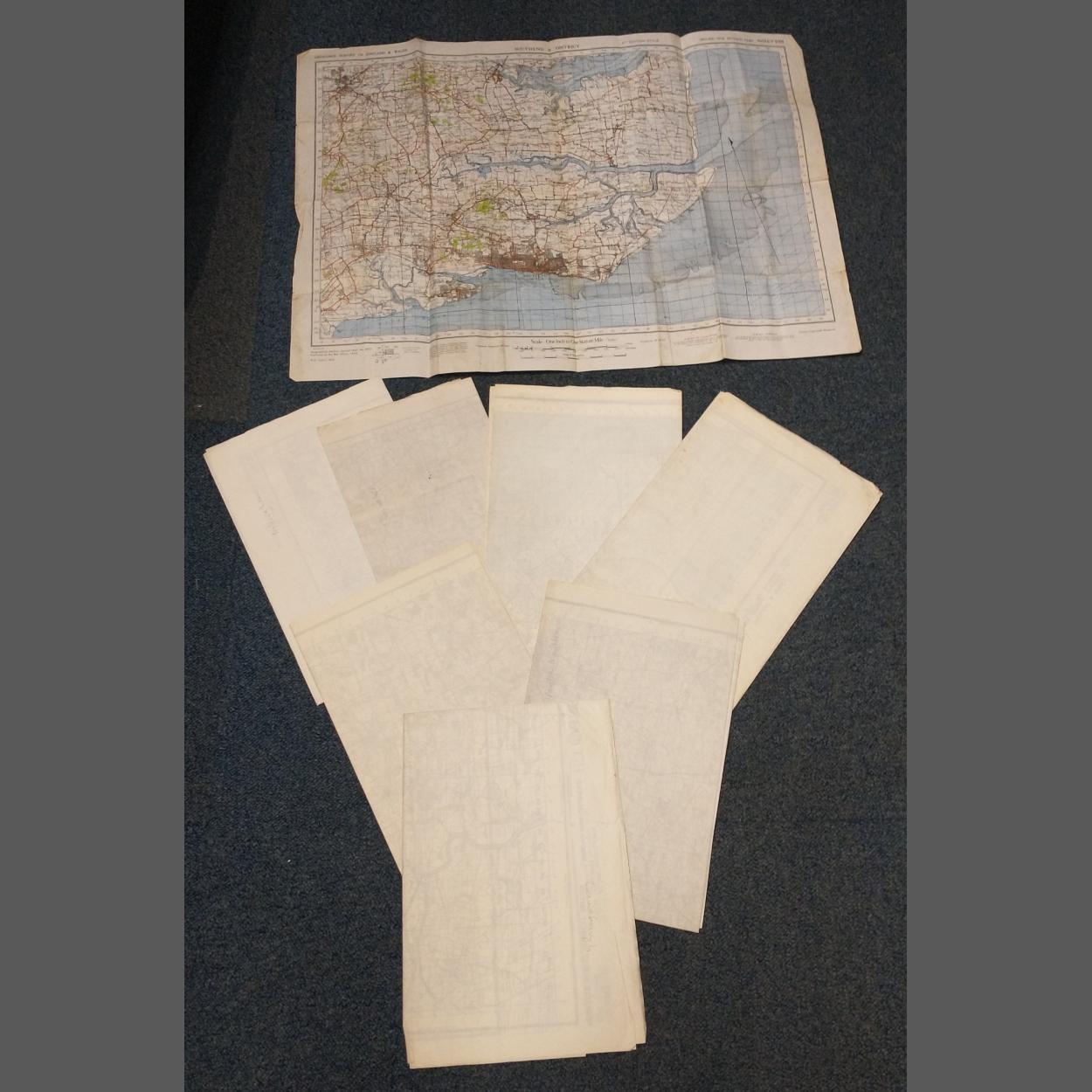 A collection of ORDNANCE SURVEY paper sheet maps issued by WAR OFFICE, mainly 1940 to include Southend, Nottingham, Lowestoft, Boston, Grimsby, Spalding, Melton Mowbray, Gainsborough. All folded but in good order