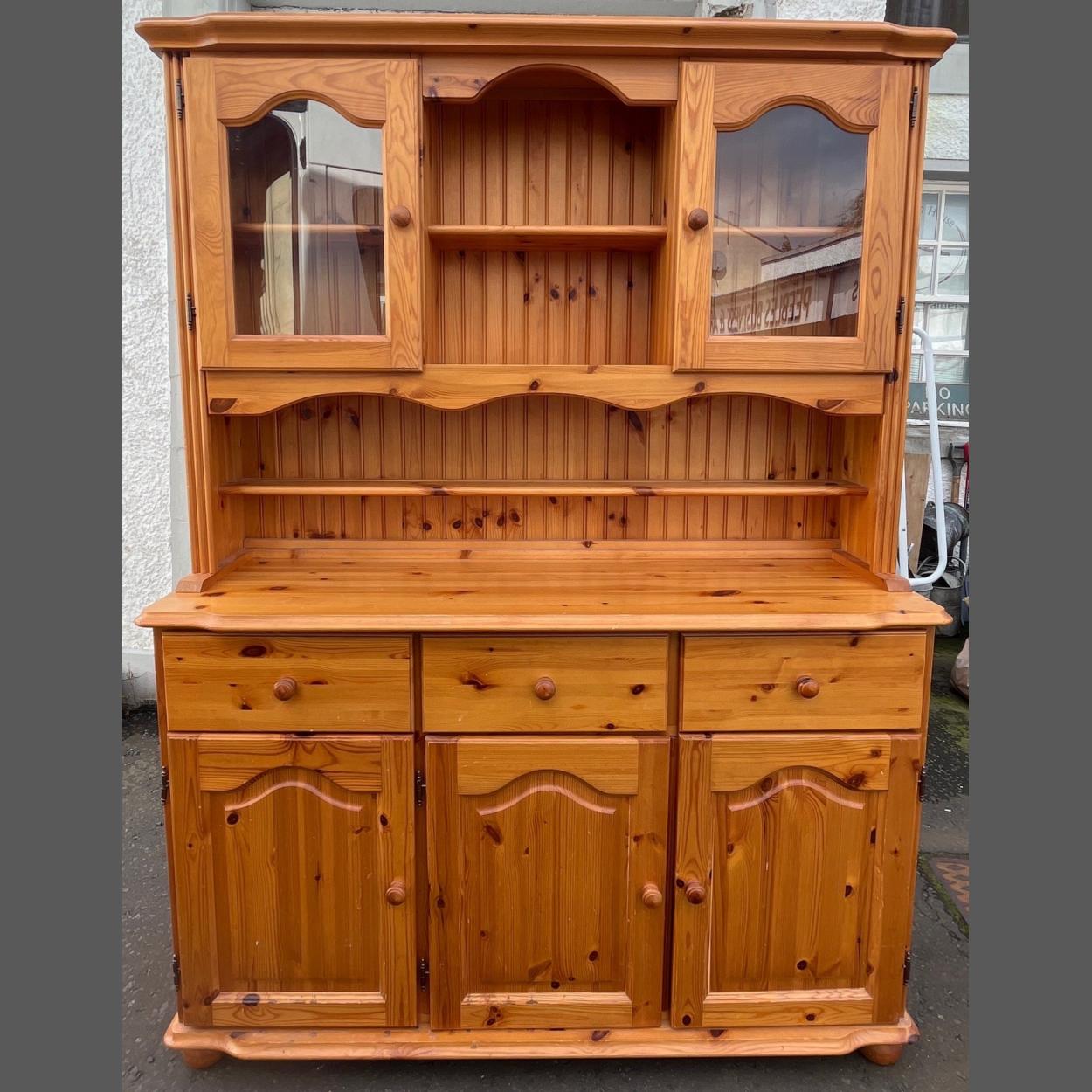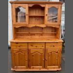 A pine dresser with 3 glazed doors and 3 pine cupboard doors 134cm x 180cm height x 45cm depth approx