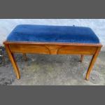 A nice quality vintage double piano lidded stool with blue velvet upholstery finished with stud edging - dimensions 3ft wide x 1 ft depth - there is storage space under the lid for music sheets etc