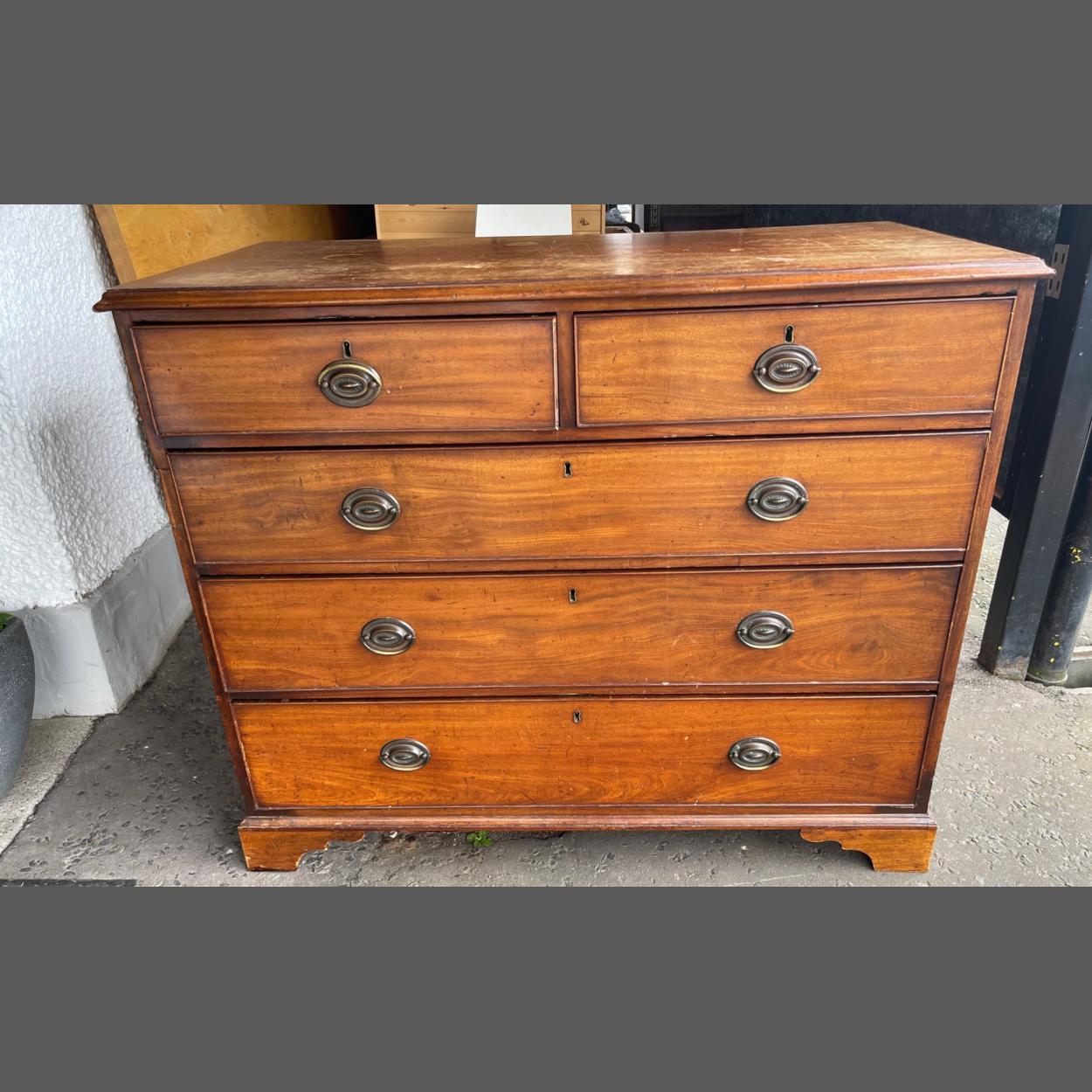 SOLID QUALITY EDWARDIAN mahogany chest of two over three drawer chest of drawers with original brass handles - dimensions 110cm width x 56cm depth x 90cm height approx