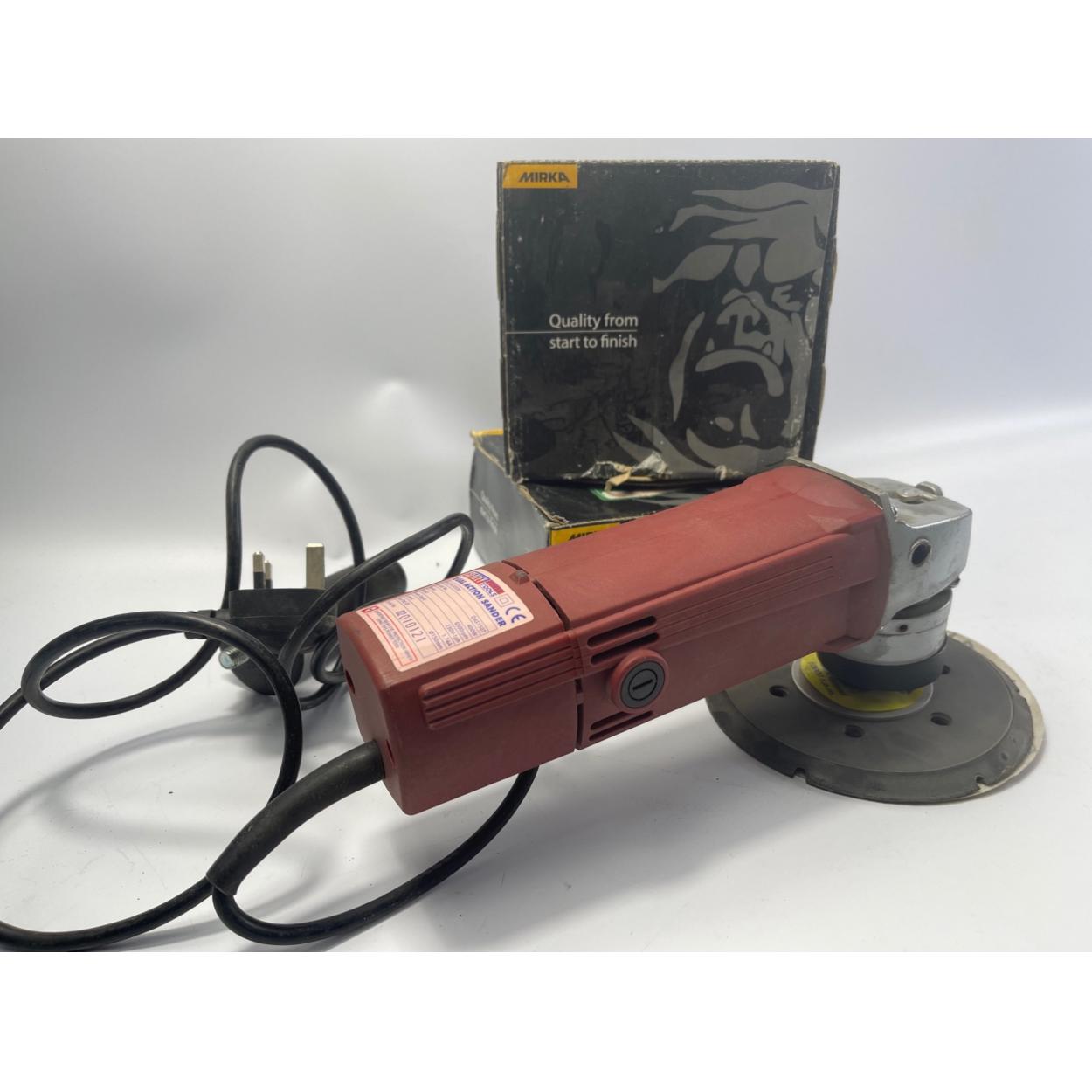 An orbital sander (15cm dia disc) by SEALEY with 2 boxes of Mirca sanding discs