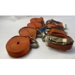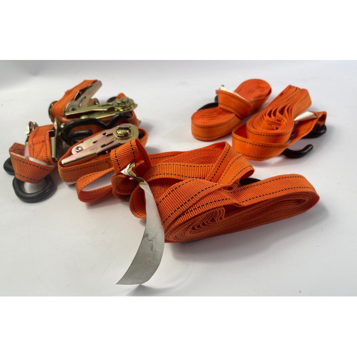 A set of four tie-down straps and a set of 4 ratchet mechanisms straps