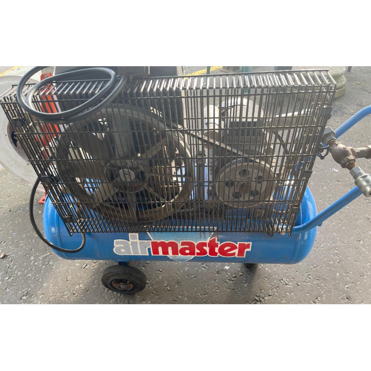 An Airmaster AIR COMPRESSOR model AM15/60 MWP150, all necessary safety fittings included in the above, 10 metres airline on a reel, paint spraying equipment and other attachments