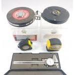 A site digital VERNIER CALIPER 0-1+ 1-2 micrometer, a Vernier caliper/ 0.25mm mic 6" steel rule trisquare, a work zone digital caliper 75-100mm mic, 4" try square and steel rule
