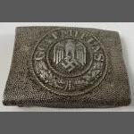 Genuine WW2 German “Wehrmacht” (army) “GOTT MIT UNS” belt buckle with Wehrmacht Eagle in Aluminium with patinated finish & working belt swivel teeth for leather belt, in good used condition. 6.5cm x 5cm