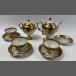 A part set vintage NORITAKE porcelain small raised teapot, sugar, 3 cups and four saucers