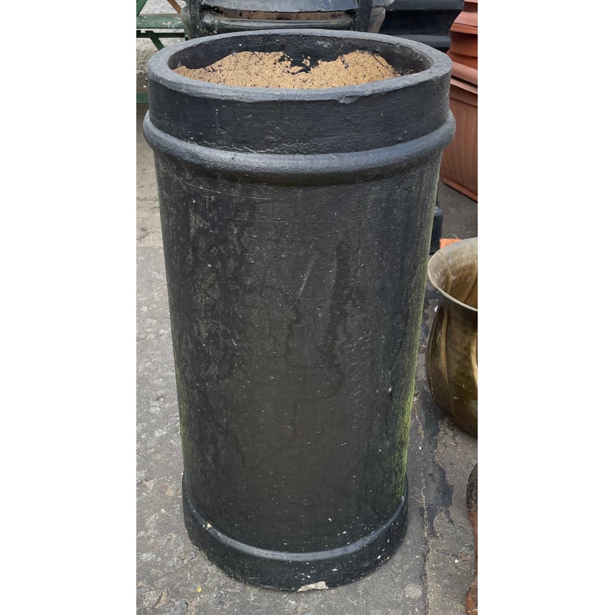A large pottery chimney pot hand painted black 60cm high x 30cm diameter
