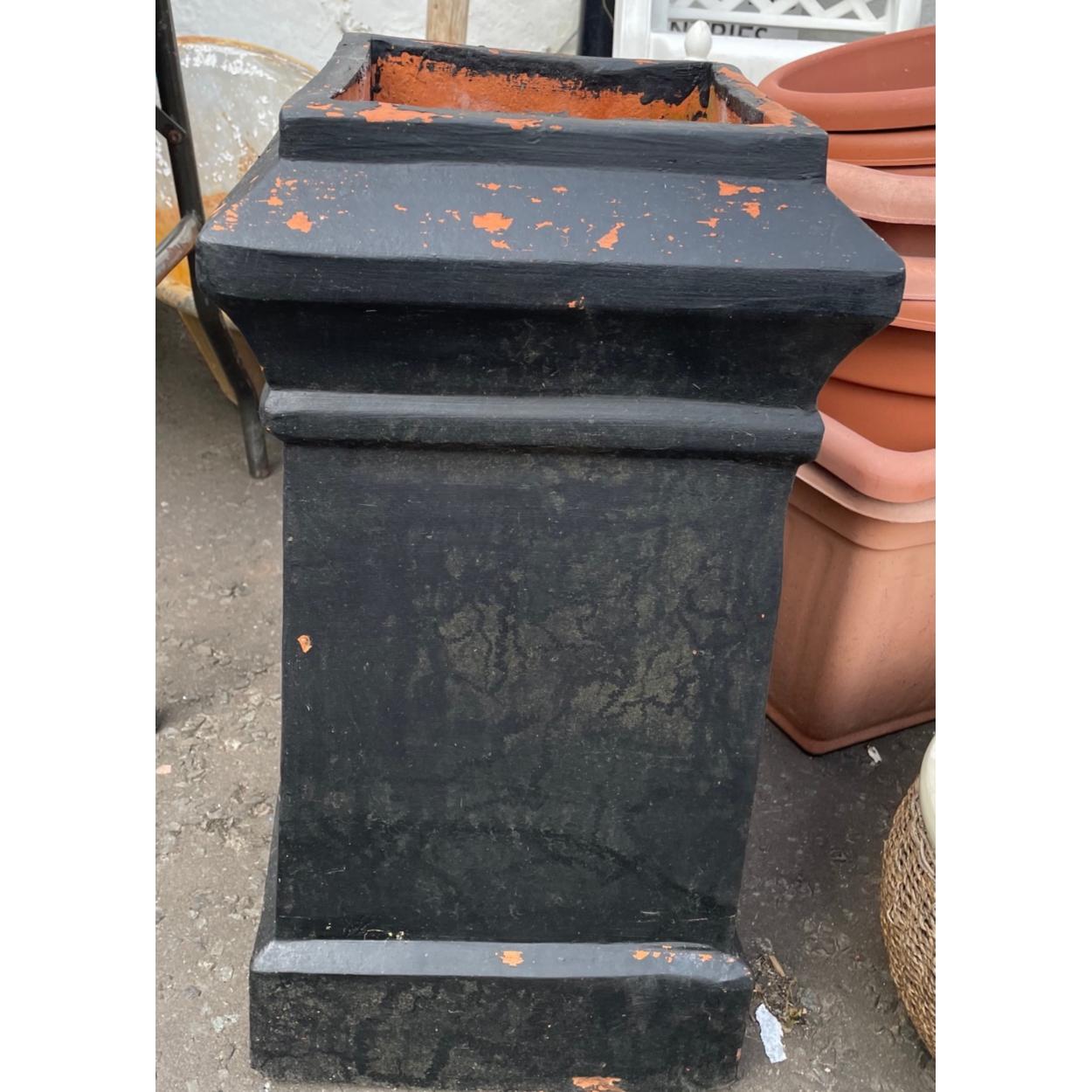 A square pottery chimney pot hand painted black 62cm high x 30cm square diameter
