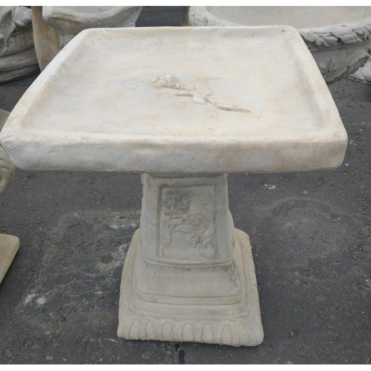 Staddle stone with weathered effect base (comes in 2 pieces). There are matching planters that will be offered to winning bidders for same hammer price