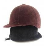 Two old riding hats, the maroon coloured one size 580mm and a smaller black velvet one
