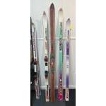 Five sets of skis, two with bindings, one set vintage hand made in AUSTRIA by KNEISSL INCLUDING TYROLIA bindings and modern skis brand names such as FISCHER HEAD DYNASTAR AND BINDINGS SALOMON