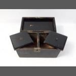 A small ORIENTAL lacquered tea caddy (without liners) with a nice brass escutcheon lock facing (no key) and two small inner lids - dimensions 19cm x 10cm x 10cm