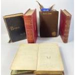 Various vintage editions of the WORKS OF ROBERT BURNS to include The KILMARNOCK BURNS MSS with notes published by D Brown 1889, BURNS POEMS AND SONGS published by Walter Scott, London, no date, (partially detached spine), POETICAL WORKS OF ROBERT BURNS with Life and Notes by William Wallace published by Chambers 1907 (previous owner's name incised front inner front cover), THE POETICAL WORKS OF ROBERT BURNS published by Suttaby & Co 1888 with worn leather cover, plus the edition published by Frederick Warne (badly damaged hardback cover),