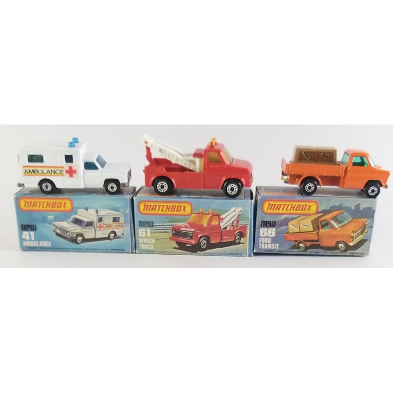 MATCHBOX Diecast x 3. 61 Wreck Truck, 66 Ford Transit, 41 Ambulance. All boxed good condition.