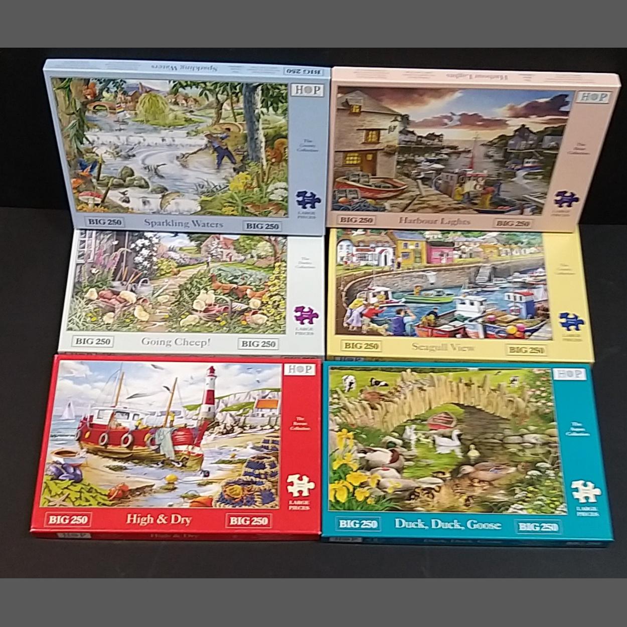 Get ready for the long winter nights. JIGSAWS 250 Piece x 6. All made by HOP. Going Cheep, Seagull View, Harbour Lights, Sparkling Waters, Duck, Duck, Goose, High and Dry. All jigsaws have been checked and are complete and in good condition