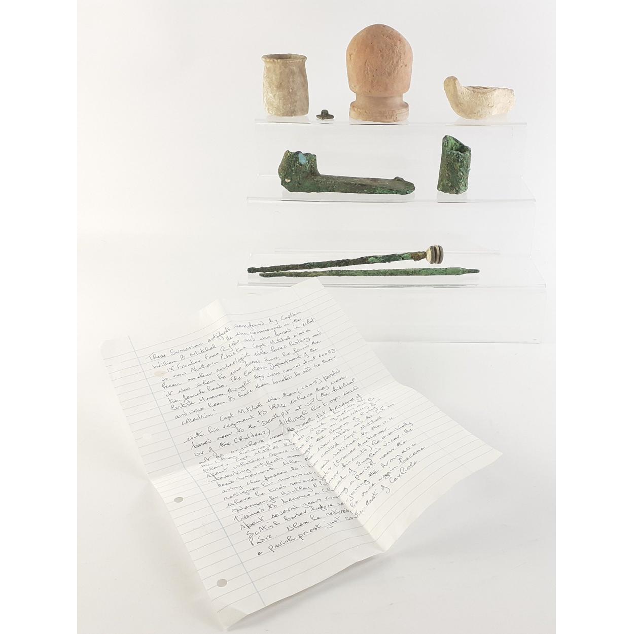 A collection of clay SUMERIAN artifacts. A lamp, axe head, pots and others, been in the family since just after WWII when brought back by a British Army Captain who was also a keen archaeologist who later became a Vicar.